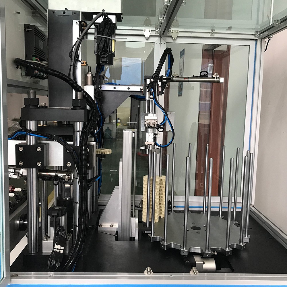 V Using servo cylinder automatic pressing, servo transposition to find the reference (spline), rotary disc type blade feeding.