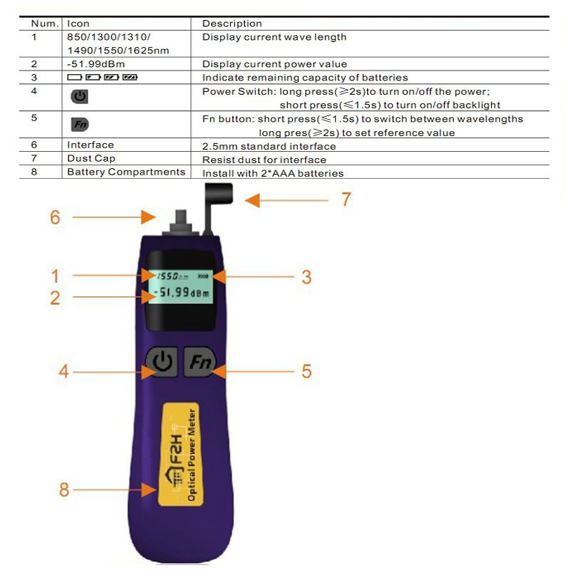 FHP12 Series Mini Optical Power Meter has compact structure and stable performance and ensures high measuring precision of 850nm, 1300nnm, 1310nm, 1490nm, 1550nm and 1625nm wavelengths. Used together with Optical Laser Source, it could accurately measure the loss of bier, cable and other passive optical devices.